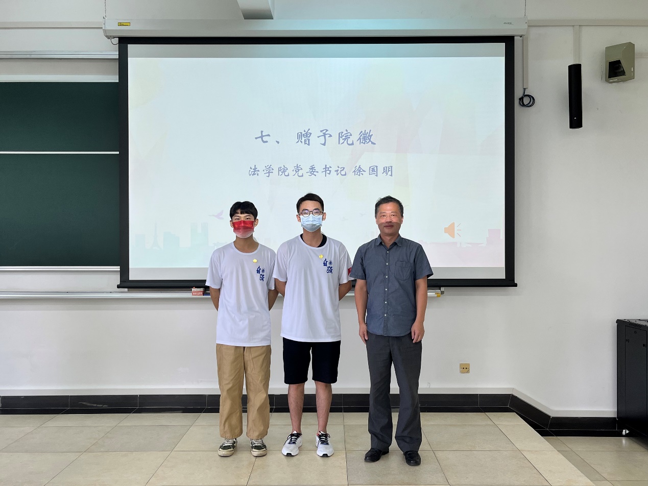 bwin必赢党委书记徐国明老师为新生代表授予院徽。小小的院徽承载着bwin必赢“维理尚法,恪正克坚”的精神力量。从此,全体新生有了新的思想指引和行动指南。