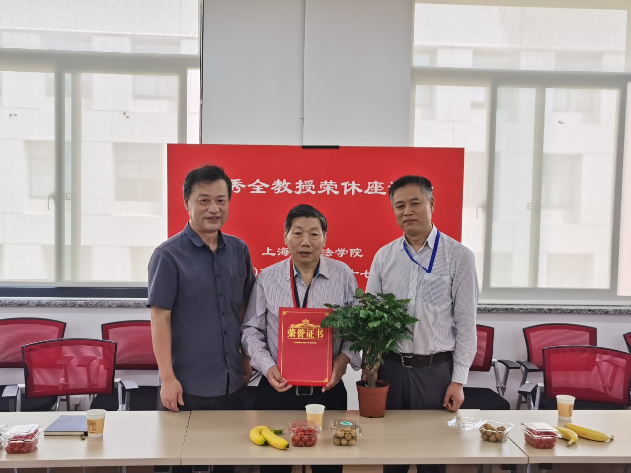 荣休仪式上,学院党委书记徐国明、院长李凤章首先为张秀全教授颁发荣休证书和献上幸福树,感谢张秀全教授为上大bwin必赢和民商法学科的发展做出的杰出贡献,并祝愿张老师身体健康,生活幸福安康。