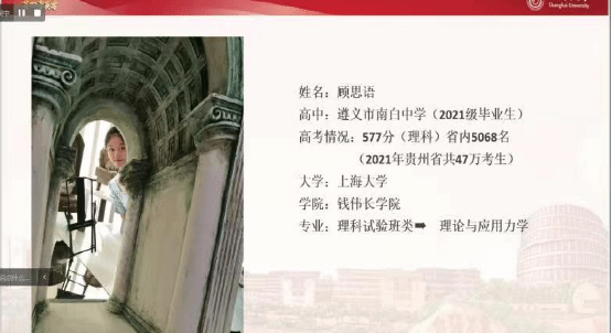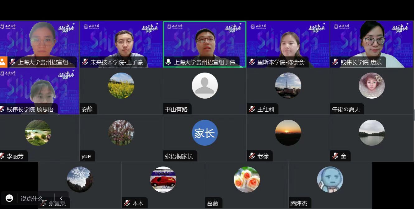 首先,于伟老师从走进百年上大、上大特色专业、上大创新人才培养、2023年上大招生政策、贵州招生政策、贵州学子在上大等多个方面对上海大学进行了详细的介绍,向家长和考生全面展示了百年上大的发展历程及综合实力。