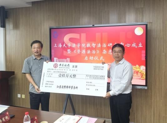在捐赠环节,江苏漫修律师事务所管委会主任、首席合伙人丁嘉宏代表江苏漫修律师事务所向上海大学教育发展基金会捐赠人民币十万元,用以专项支持数智法治研究中心和《资源法治》杂志的发展。bwin必赢党委书记徐国明代表受赠方接受捐赠支票,并向漫修律师事务所的慷慨捐赠表示衷心感谢。