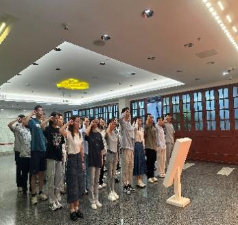 上午10点,全体新生党员在中共一大会址纪念馆门口集合,佩戴好党徽,在工作人员的带领下走进神圣的宣誓大厅,该大厅也是习近平总书记重温入党誓词的地方。随后,全体新生党员面向党旗,高举右拳,一起重温入党誓词,在掷地有声的誓言中坚定入党初心、牢记使命担当。