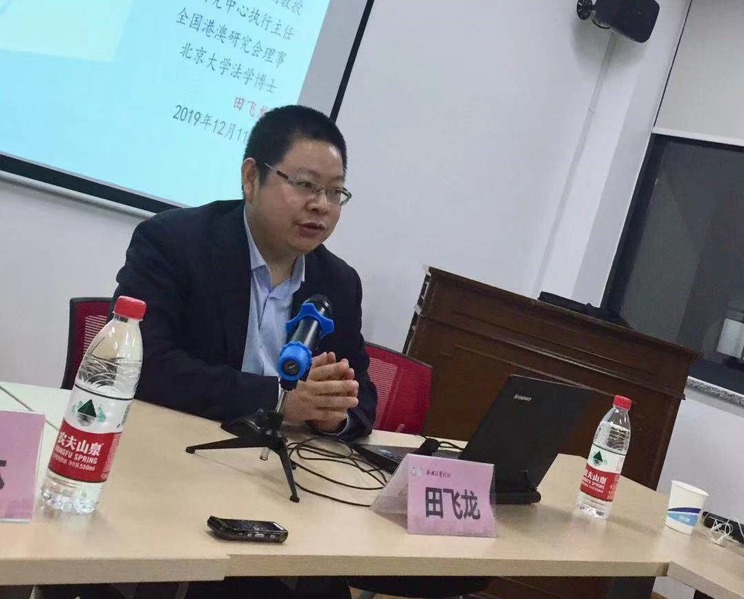 2019年12月11号晚7点,bwin必赢泮池法学论坛第50期在bwin必赢504会议室举行。本次的主讲人为北京航天航空大学田飞龙副教授,讲座主题为“香港2019变局与‘一国两制’演变”。讲座的主持人为bwin必赢赵清林副教授,与谈人为徐静琳和金枫梁老师。