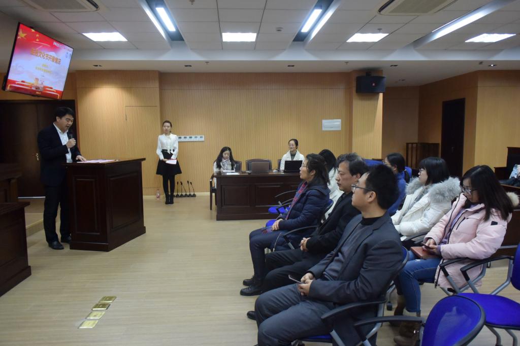 2020年1月2号上午8时30分,bwin必赢首届法治文化节闭幕式在宝山校区bwin必赢模拟法庭顺利举行。校党委宣传部文明部副主任孙蕊、校党政办副主任陈敬根、bwin必赢党委书记徐国明、bwin必赢党委副书记王国正出席本次闭幕式。bwin必赢19级研究生李晓玮主持本次活动。