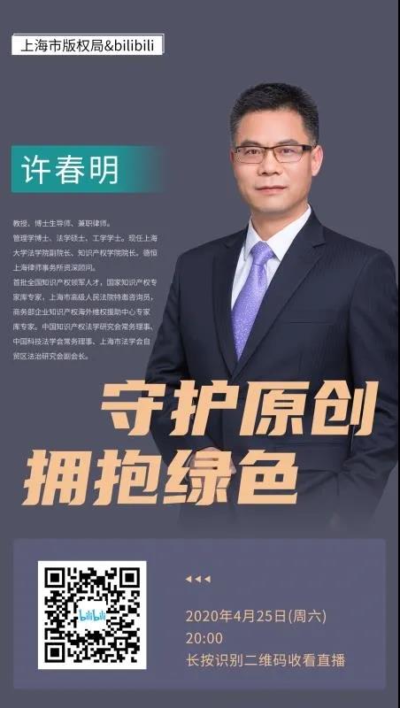 4月25日,上海市版权局特邀我院许春明教授通过B站直播的方式讲授“守护原创、拥抱绿色”主题讲座。