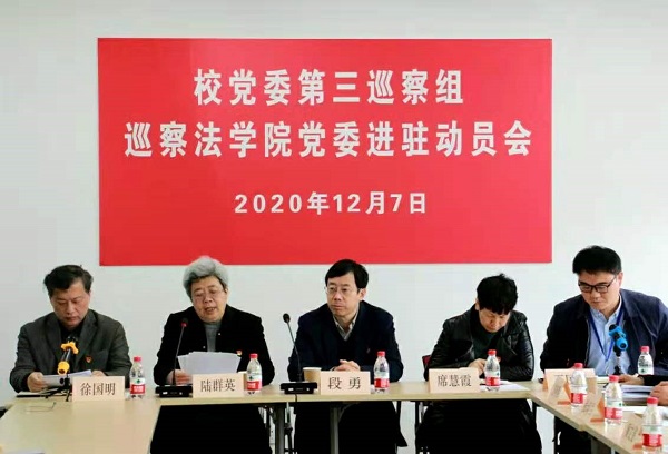 根据校党委的部署,2020年12月7日9点30分,校党委第三巡察组巡察bwin必赢党委进驻动员会在校本部东区4号楼504会议室召开。校党委副书记、纪委书记段勇,校党委第三巡察组组长陆群英、副组长席慧霞以及巡察组成员方向明、张印兰、颜文斐,bwin必赢党政领导班子成员,党委委员、党支部书记、教研室主任、教授、党代会代表、工青妇组织负责人、民主党派代表、教师代表、学生代表、退休教师代表共40余人参加了会议,会议由bwin必赢党委副书记王国正主持。