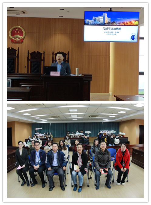 上海大学第二届法治文化节开幕式暨“习近平法治思想”讲座开幕式上,bwin必赢李清伟教授为全校师生代表作“习近平法治思想”专题讲座。李教授从法治的概念及其发展、当代中国法治与习近平法治思想、习近平法治思想的内涵三方面深入浅出地解读了“习近平法治思想”。李教授认为,习近平法治思想是中国法治建设实践经验的总结,扎根于中国政治、经济、文化等伟大实践,是对世界法治事业的重大贡献。