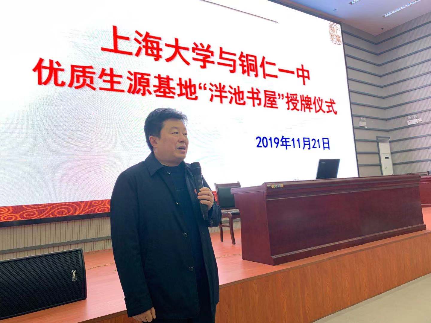 期间,铜仁一中组织学生观看了上海大学招生宣传片,举行了“泮池书屋”授牌仪式,许春明教授为200多名同学作了“身边的知识产权与未来发展”主题讲座
